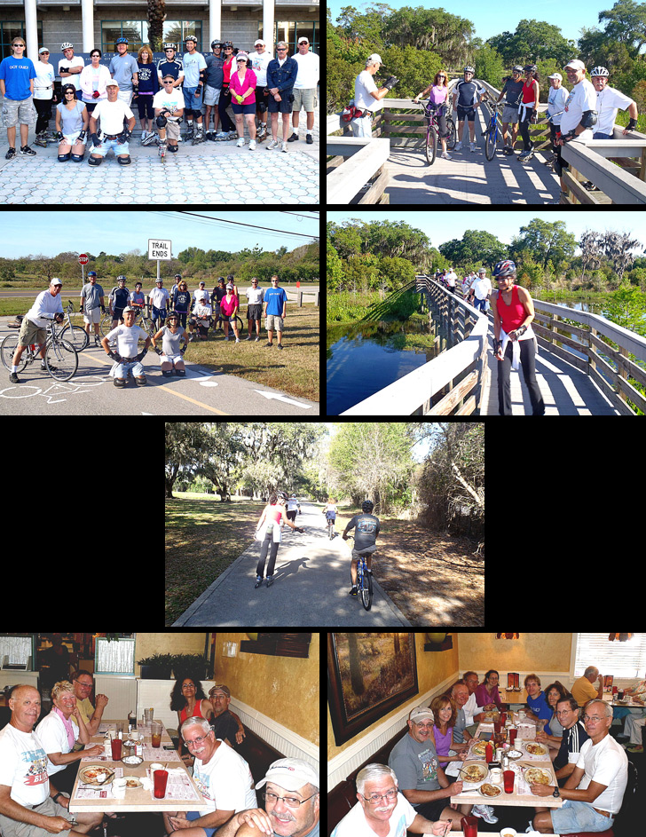Another Beautiful Day in Paradise. Was a beautiful day in the 70's with sunny skies and a little breeze out of the East. Perfect day for blading/bicycling. The Long Center was having a basketball playoff and we had to park all over the place. Absentees Vicke K, Karen H, Cherie M, John L, Susan, Dave, Chris & Theressa V and Wendy & Adam joined us. Andrew F joined us again. Sarah P arrived late and missed the group picture. Welcome all. Dee had scouted Saturday and indicated Bay Shore Drive in Safety Harbor was still under construction so we did the Old Coachman Rd. South extension under the Power Lines. Some of the group out in front still went ahead and did most of Bay Shore Drive and managed to do 14.9 miles. The slower group turned around at the lake go around and did 9.6 miles. We had 7 bicyclists.