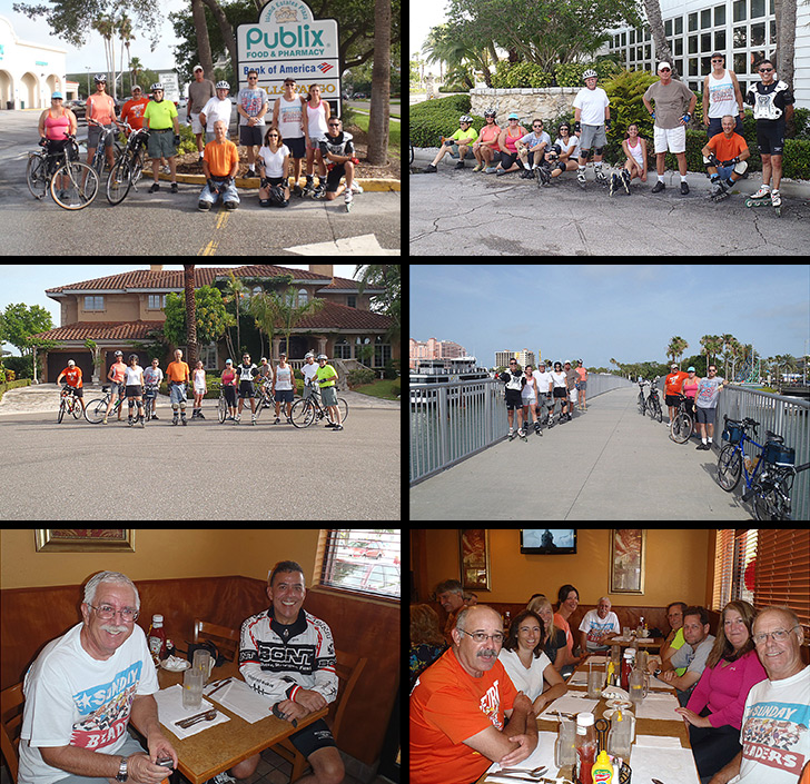 Another Beautiful Day in Paradise. The air was a little humid and we had a ESE Breeze with pretty clear skies. Absentees Demitri, Crystal, Julie K, Karen T, Cindy S, Dave A and Wendy H came. Welcome all. We did our normal Clearwater Beach route. When we got to the Beach they had a big volleyball tournament going on. The group that did the Clearwater bridge did 11.8 miles and the rest did 11.2 miles. We had 6 Bladers and 7 Bicyclers. Julie K became a Sponsor today. Thanks Julie for the web site support.